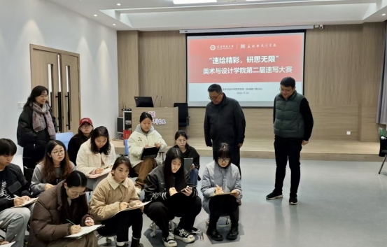11月22日上午,学院于实训楼二楼艺言堂举办主题为“速绘精彩,研思无限”第二届速写大赛。活动吸引了众多学生的积极参与,不仅提升了同学们的创作水平和审美能力,也为全院营造了浓厚的学术氛围。