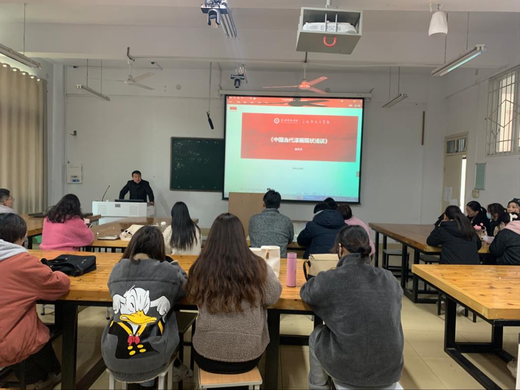 12月06日下午2:30,赵志杰老师在艺术楼308教室作了题为“中国当代漆画现状浅谈”的学术报告。由2020级研究生代表唐硕主持该活动,2020、2021级研究生参加了此次学术报告。