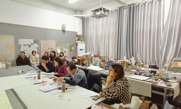 本次中期考核分两组进行,A组由邹东升、张伟两位老师担任评审老师,B组由郑蔚、董建义、刘文忠三位老师担任评审老师,分别对13名艺术硕士研究生的毕业创作和8名教育硕士研究生的学位论文完成情况进行了集中考核。艺术硕士研究生将毕业创作作品张贴墙面,两位老师就学生的立意构思、构图形式、表现手法等方面做了点评,结合目前作品存在的问题做了答疑解惑,并给出了详细的修改方案;教育硕士研究生以PPT陈述的方式,将论文初稿完成情况做了汇报,三位老师对论文的写作思路、文献引用、前期调研、案例支撑等方面给出了详细而细致的修改意见。