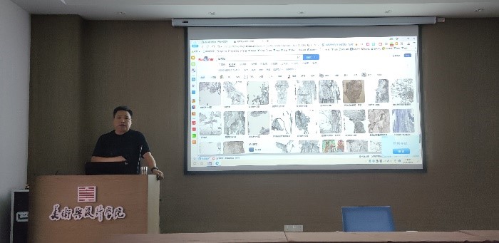 此次活动分为两个环节,张伟老师担任学术主持。首先,播放了南京艺术学院美术学院院长,博士生导师周京新教授在线分享的学术讲座录播《笔墨等于几》。周京新教授的学术讲座共分作水墨画创作的写性,工性,天性,我性等部分。“写性”就是追求书写性,那是中国画语言的特质。“工性”就是追求技呈法度,落笔成器。“天性”就是要循得自然生成之道,师法造化。“我性”就是要表露自己的真性情,凸显个性。重点强调了笔墨是技术与精神合成的东西,精神性的东西再怎么高妙,一定是与技术性的东西融为一体、相得益彰的。笔墨应该体现我们的文化精神,更是我们对待自然的一种科学态度。中间阐述了传统技法对中国画发展产生的影响以及古今中外绘画艺术的对比,对水墨画的特点进行了总结,最后回答了几位老师在抽象绘画、中西方绘画学习融合等方面提出的问题,对水墨画的特点进行了总结。