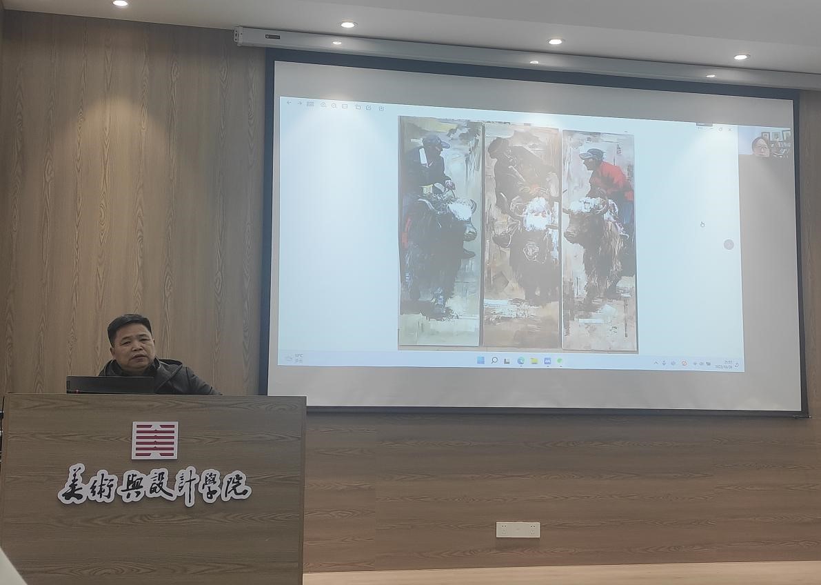 讲座播放之前,张伟副院长首先发表了讲话,督促同学们认真向前辈老师学习,并对本次讲座——《创作杂谈——油画语言与风格》的内容做了简单的介绍。